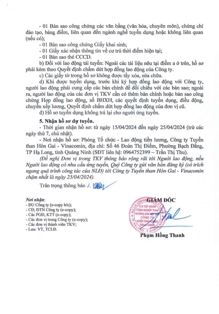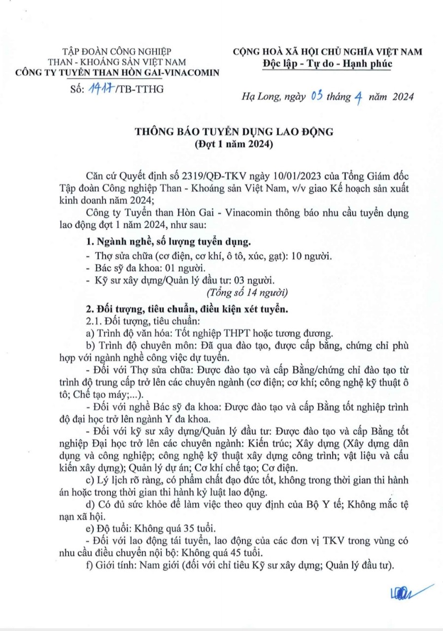 THÔNG BÁO TUYỂN DỤNG LAO ĐỘNG (ĐỢT 1) NĂM 2024