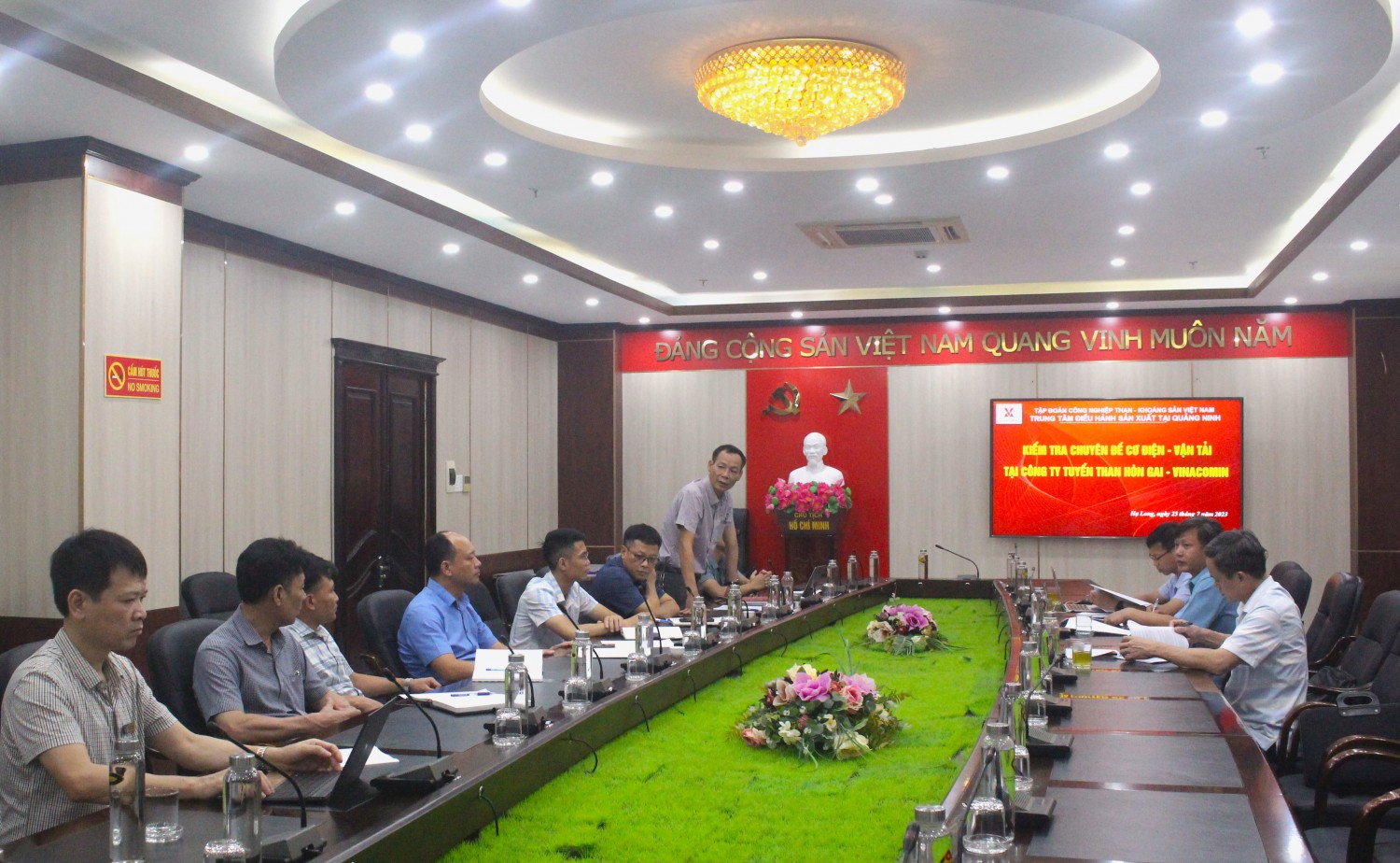 Thực hiện công điện số 269/CĐ-TTĐHSX ngày 24/7/2023 của Trung tâm điều hành sản xuất tại Quảng Ninh. Sáng ngày 25/7/2023, tại Văn phòng Công ty Tuyển than Hòn Gai - Vinacomin. Đoàn kiểm tra của TKV đã kiểm tra chuyên đề Cơ điện vận tải của Công ty