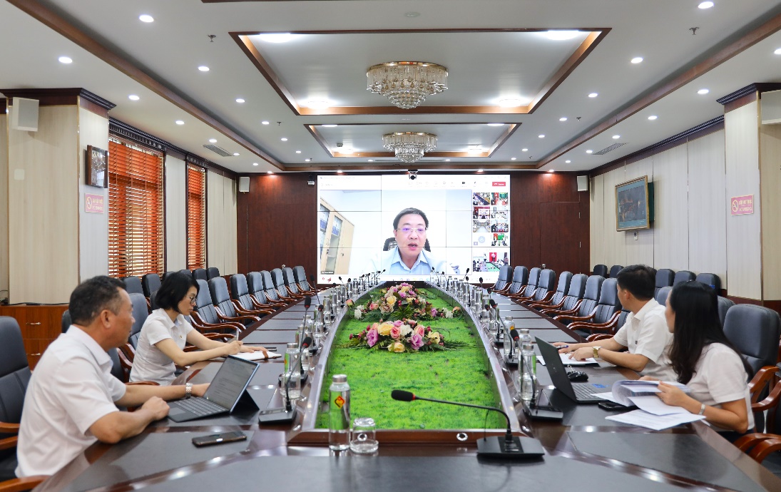 Ảnh: Giám đốc Công ty chủ trì họp trực tuyến với các đơn vị sản xuất.
