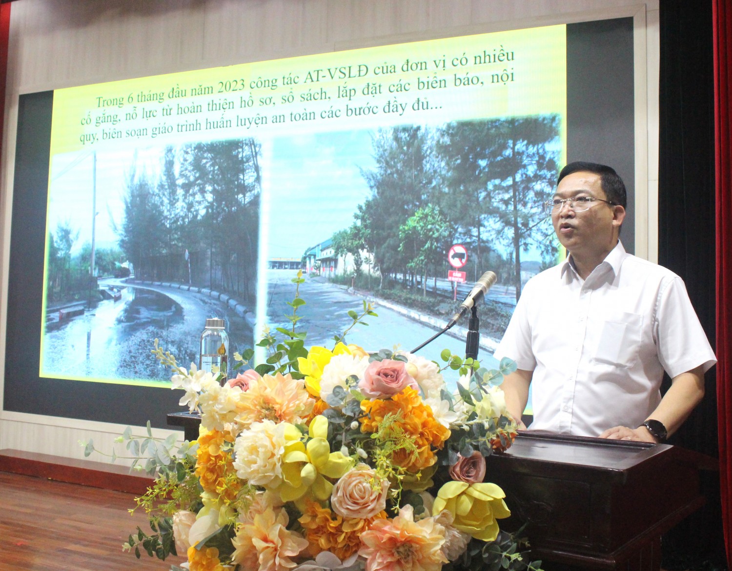 Đồng chí Đỗ Ngọc Tú - Phó Giám đốc, Chủ tịch Hội đồng ATVSLĐ báo cáo kết quả thực hiện công tác ATVSLĐ trong 06 tháng đầu năm 2023