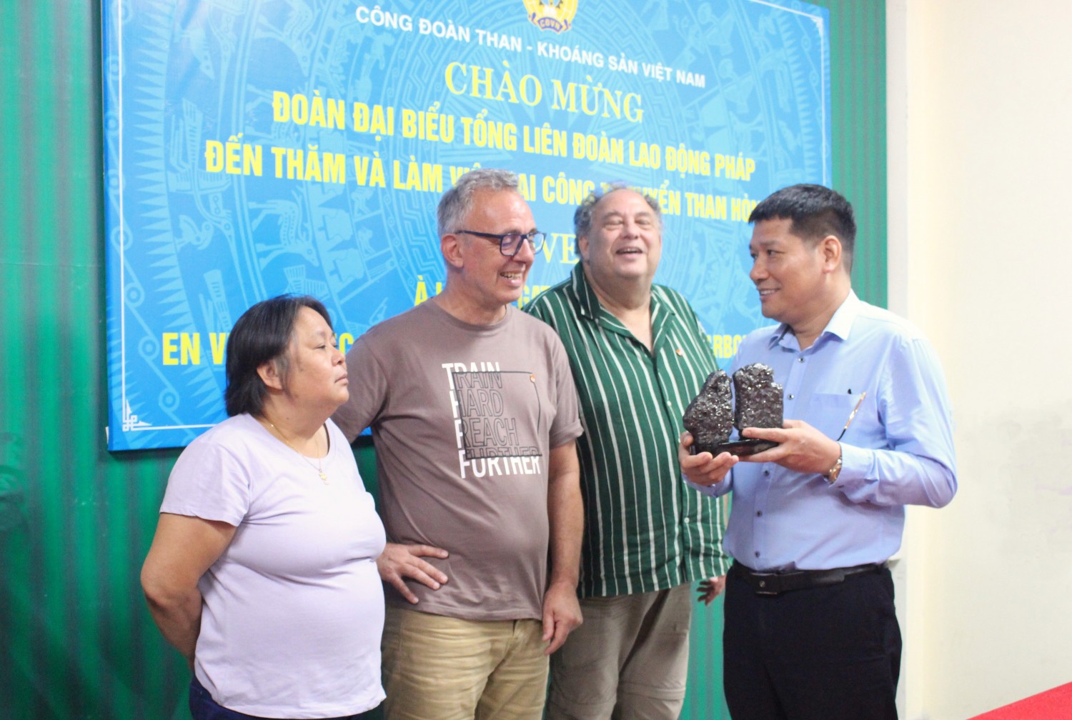 Nhân dịp này, Công đoàn Tuyển than Hòn Gai đã gửi tặng các vật phẩm điêu khắc mỹ nghệ trên than đá tới đoàn công tác của Tổng liên đoàn lao động Pháp; Đại diện Tổng liên đoàn lao động Pháp cũng đã trao tặng những chiếc áo rất ý nghĩa, phần quà cho đại diện CNLĐ Phân xưởng sàng tuyển, nhằm động viên CNLĐ nhân dịp chuyến sang thăm và làm việc tại Công ty. Đoàn đã đi thăm khai trường sản xuất, tìm hiểu về công nghệ Sàng tuyển than, được chứng kiến những người lao động của Công ty làm việc trên khai trường sản xuất; thăm trung tâm vận hành toàn bộ dây chuyền sản xuất của nhà máy Sàng tuyển, các điều kiện làm việc, phục vụ CNVCLĐ trong Công ty./. Tại buổi làm việc, hai Bên đã trao đổi, đưa ra các đề xuất, ý kiến và cùng thống nhất nhiều nội dung liên quan đến việc chăm lo đời sống, sức khỏe cho người lao động. Thay mặt Đoàn Tổng liên đoàn lao động Pháp,đồng chí Gérard Ré - Ủy viên ban Thường vụ, Trưởng ban đời sống Tổng liên đoàn lao động Pháp đã trân trọng cảm ơn Ban đối ngoại Tổng liên đoàn lao động Việt Nam, Công đoàn Than - Khoáng sản Việt Nam, Công đoàn Công ty Tuyển than Hòn Gai đã dành thời gian tiếp đón và trao đổi với Đoàn. Chuyến thăm này đã góp phần đẩy mạnh, phát triển hơn nữa mối quan hệ hữu nghị vĩ đại, tình đoàn kết đặc biệt và hợp tác toàn diện giữa Tổng liên đoàn lao động hai nước Việt Nam - Pháp ngày càng phát triển, bền vững.