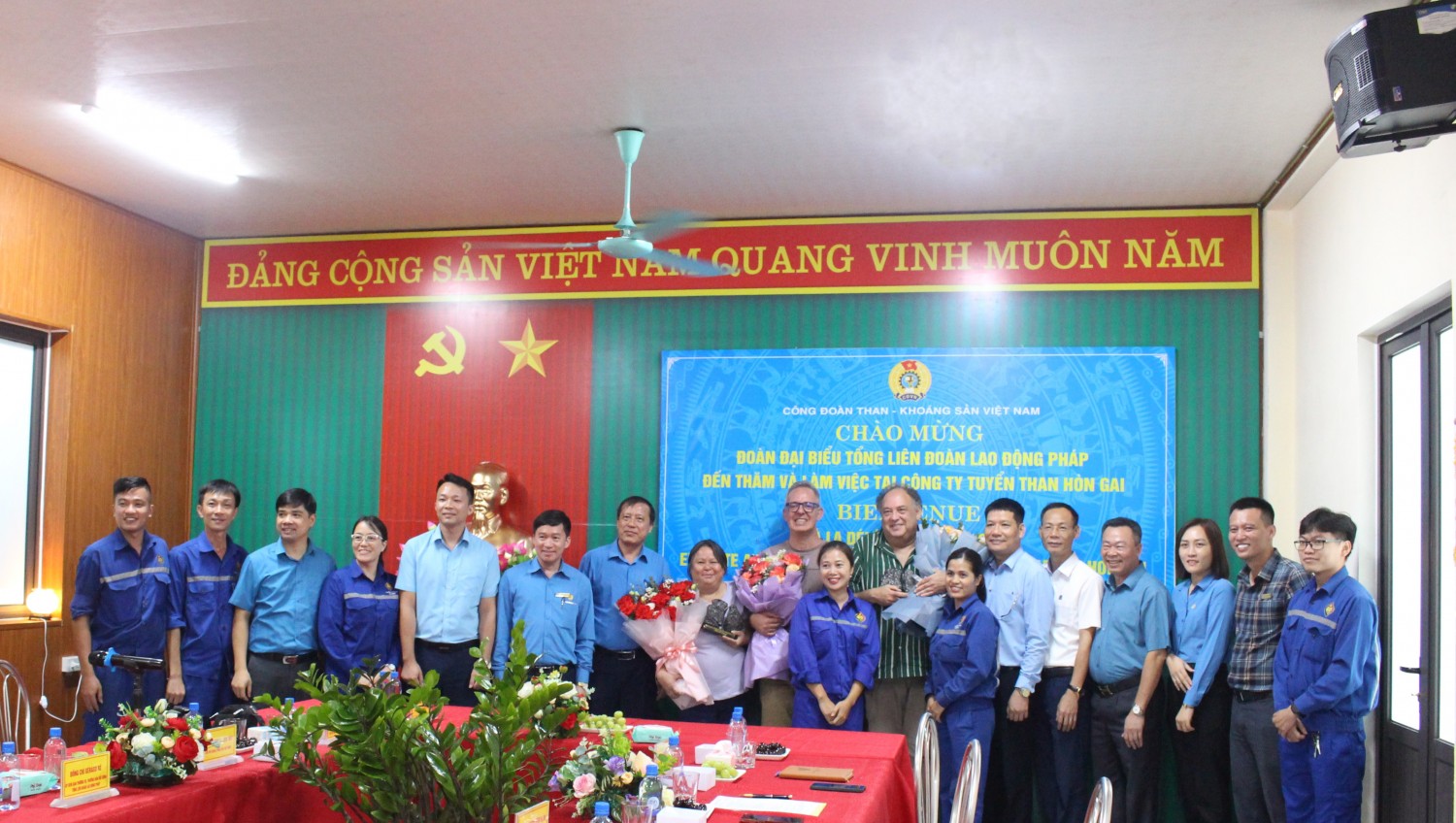 Đoàn cán bộ Tổng liên đoàn lao động Pháp do đồng chí Gérard Ré - Ủy viên ban Thường vụ, Trưởng ban đời sống Tổng liên đoàn lao động Pháp, Trưởng đoàn; Đồng chí Alexia Muller - Ủy viên ban thường vụ, Chủ tịch Công đoàn Pari và vùng lân cận; Đồng chí Sylvain Goldstein - Cố vấn ban đối ngoại khu vực châu Á - Thái Bình Dương. Tham gia đoàn công tác có các đồng chí trong Ban Đối ngoại Tổng LĐLĐ Việt Nam; đồng chí Phạm Hồng Hạnh - Phó Chủ tịch Công đoàn Than - Khoáng sản Việt Nam và đại diện các ban Công đoàn TKV. Tiếp và làm việc với đoàn có đồng chí Bùi Hữu Lý - Chủ tịch Công đoàn Công ty; Các đồng chí đại biểu lãnh đạo Thường trực Đảng ủy, Phó Giám đốc, Thường vụ Công đoàn, Đoàn TN, Chánh văn phòng, Trưởng phòng TB và Quản đốc Phân xưởng Sàng tuyển Tại buổi làm việc, đồng chí Phạm Hồng Hạnh - Phó Chủ tịch Công đoàn Than - Khoáng sản Việt Nam giới thiệu tóm tắt quá trình xây dựng và phát triển Công ty Tuyển than Hòn Gai - Vinacomin, kết quả sản xuất kinh doanh và các mặt hoạt động của Công ty; Đồng chí Bùi Hữu Lý - Chủ tịch Công đoàn Công ty giới thiệu về tình hình SXKD, đời sống, việc làm của CNVCLĐ, mô hình tổ chức, phong trào CNVC và hoạt động Công đoàn của Công ty Tuyển than Hòn Gai - Vinacomin.