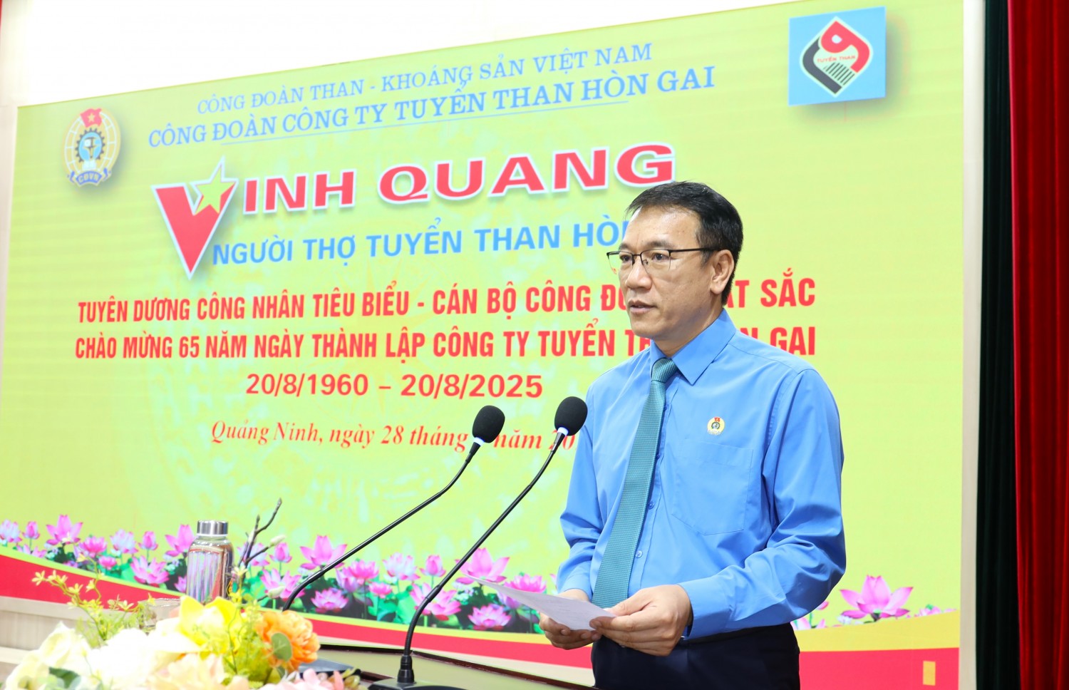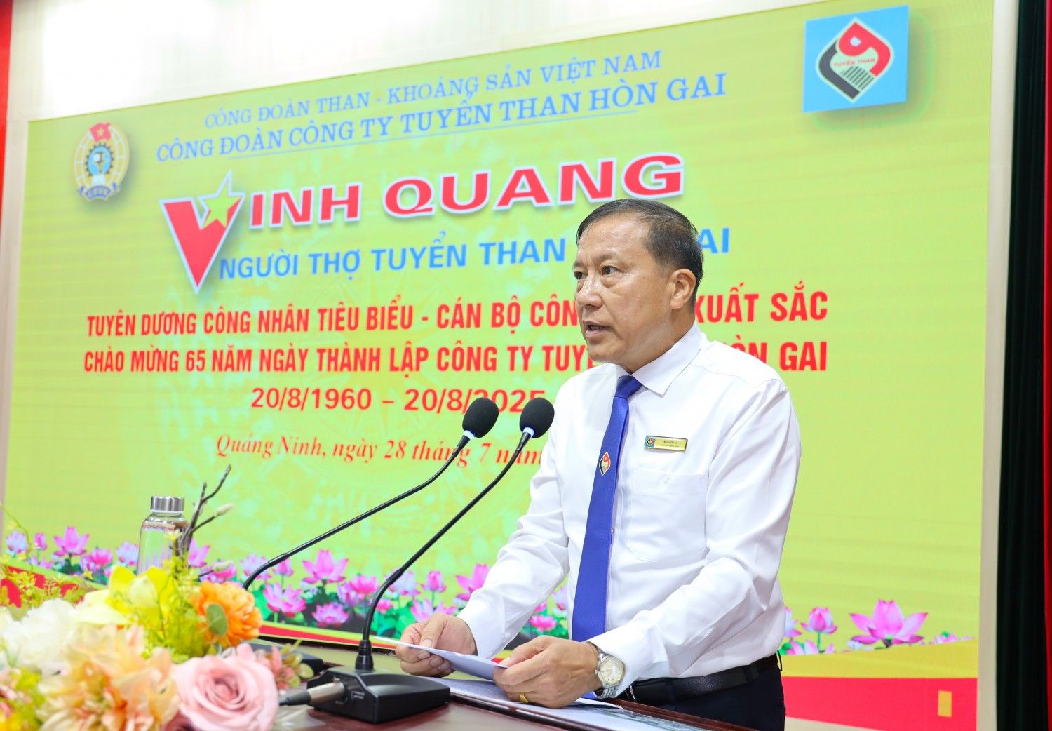 Đồng chí Tô Xuân Thao - Ủy viên Đoàn Chủ tịch Tổng LĐLĐ Việt Nam, Chủ tịch LĐLĐ tỉnh Quảng Ninh đã biểu dương những thành quả nổi bật của Công ty Tuyển than Hòn Gai