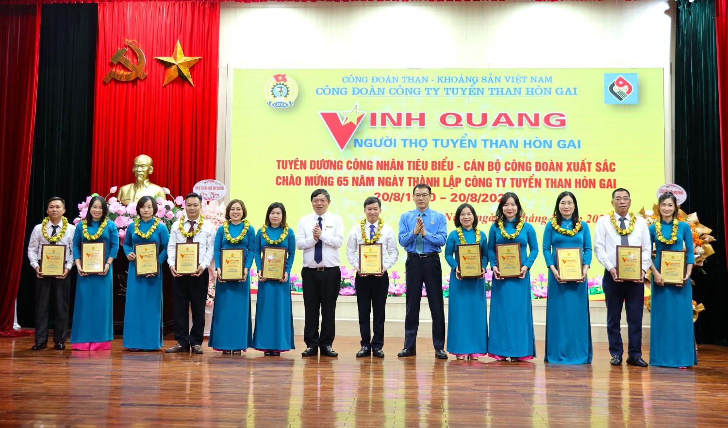 Cũng trong chương trình, đồng chí Tô Xuân Thao - Ủy viên Đoàn Chủ tịch Tổng Liên đoàn Lao động Việt Nam, Chủ tịch LĐLĐ tỉnh Quảng Ninh đã biểu dương những thành quả nổi bật của Công ty Tuyển than Hòn Gai và đánh giá cao vai trò của tổ chức Công đoàn trong việc đồng hành, chăm lo đời sống người lao động, phát huy vai trò nòng cốt trong các phong trào thi đua lao động sáng tạo. Điểm nhấn trang trọng và xúc động của chương trình là lễ tuyên dương, khen thưởng 65 công nhân tiêu biểu và cán bộ công đoàn xuất sắc, những hạt nhân điển hình trong phong trào thi đua “Lao động giỏi, lao động sáng tạo”, những người đã và đang âm thầm góp sức mình dựng xây truyền thống, lan tỏa tinh thần đoàn kết, trách nhiệm trong mỗi ca sản xuất.