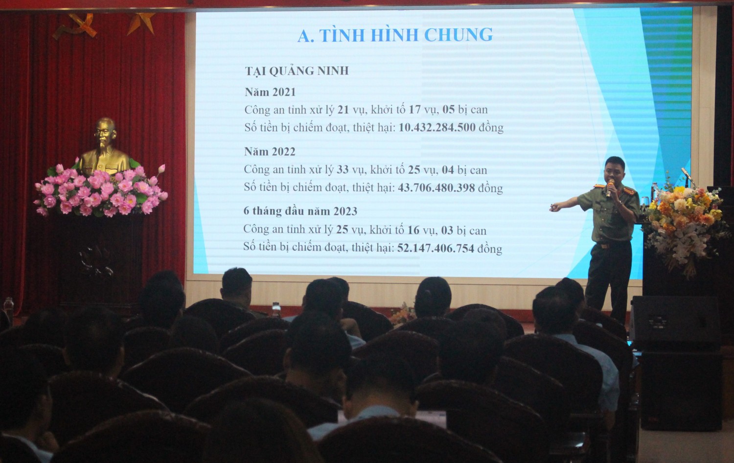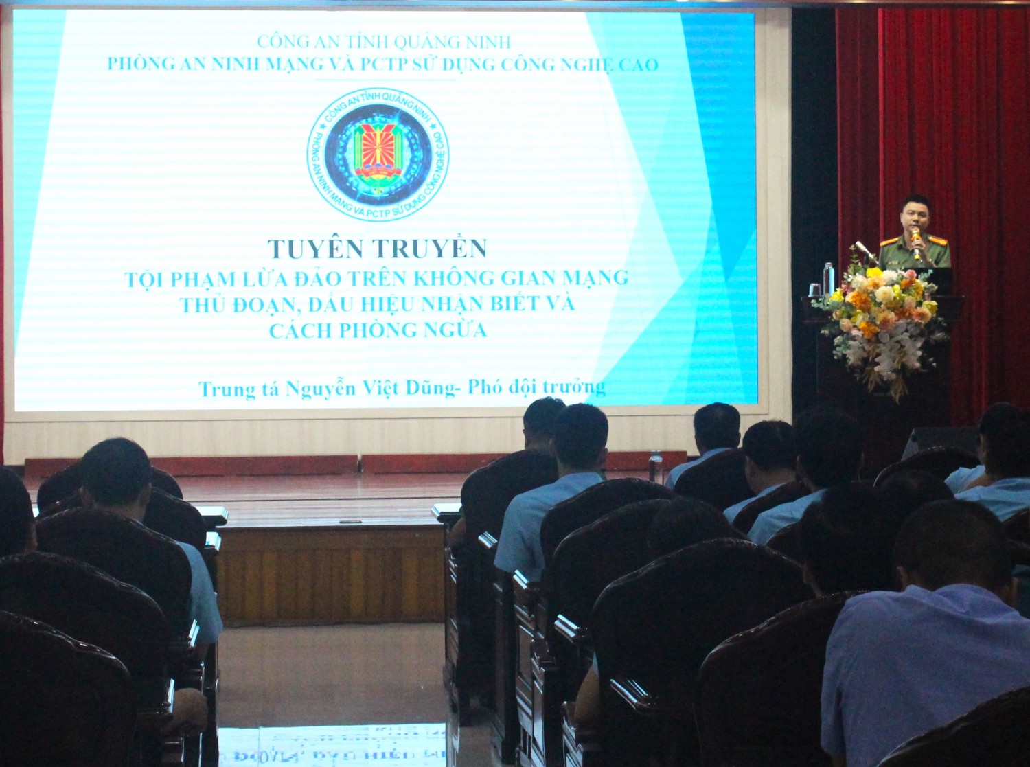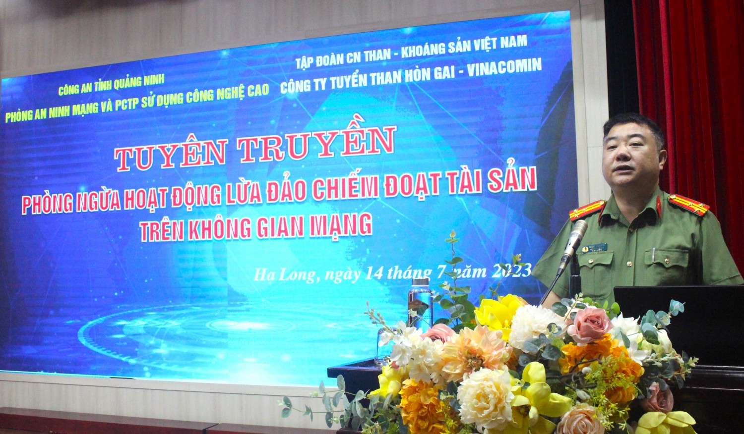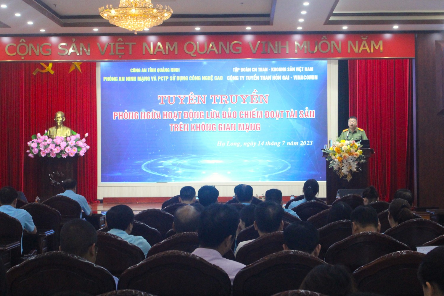 Thời gian vừa qua, lợi dụng sự phát triển của Công nghệ thông tin, tội phạm sử dụng công nghệ cao thực hiện hành vi lừa đảo chiếm đoạt tài sản diễn ra khá phổ biến dưới nhiều hình thức, nhiều phương pháp, thủ đoạn hết sức tinh vi. Trước tình hình đó, Công ty Tuyển than Hòn Gai - Vinacomin đã phối hợp với Phòng An ninh mạng và Phòng, chống tội phạm sử dụng công nghệ cao, Công an Tỉnh Quảng Ninh để tuyên truyền nâng cao nhận thức của CBCNV trong Công ty về việc tự bảo vệ bản thân trước những thủ đoạn của tội phạm.