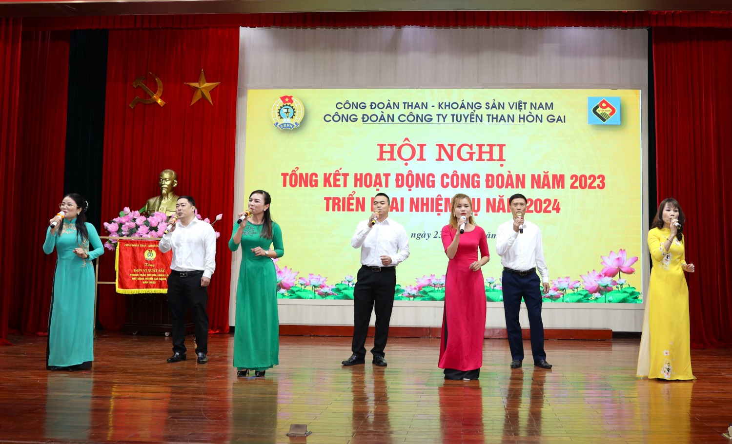 Phạm Anh Tuấn (đứng giữa) - giọng nam chính của đội văn nghệ Công ty.