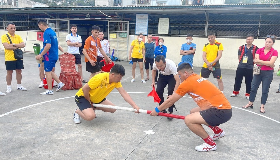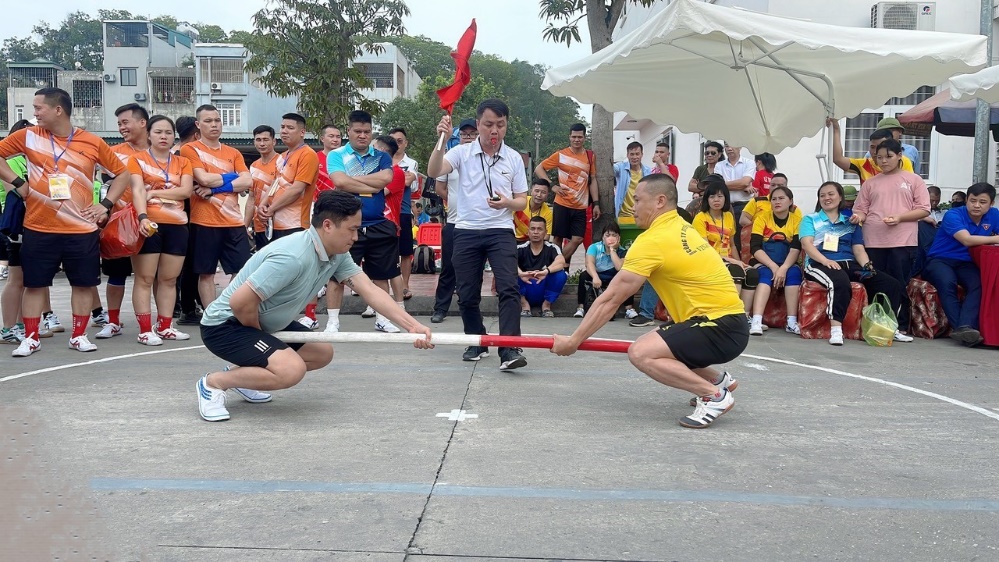 Các vận động viên của Công ty tham gia môn đẩy gậy nam