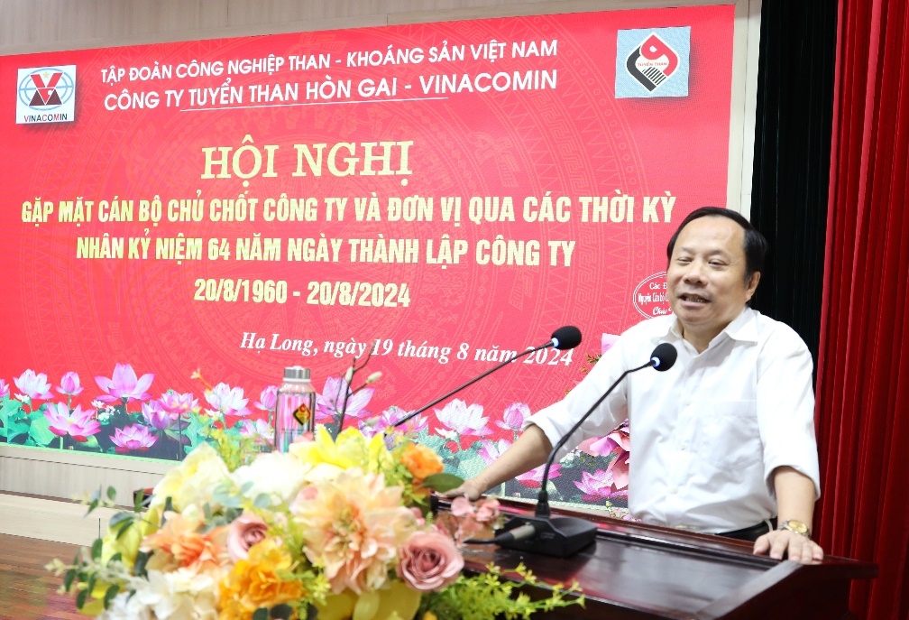Đại diện cho các cán bộ chủ chốt của Công ty và đơn vị qua các thời kỳ, đồng chí Bùi Anh Dũng - Nguyên Bí thư Đảng ủy, Giám đốc Công ty đã có những lời phát biểu, tâm sự, động viên đầy tâm huyết. Đồng chí rất cảm động và vui mừng với những kết quả mà Công ty đã và đang làm được trong hoạt động sản xuất kinh doanh, đặc biệt là việc quan tâm, chăm lo đến đời sống vật chất, tinh thần cho người lao động. Đồng thời mong muốn CBCNV tiếp tục giữ gìn truyền thống đoàn kết “kỷ luật và đồng tâm”; chủ động, tự lực tự cường, huy động sức mạnh tập thể để vượt khó, phát huy tiềm năng về con người, xây dựng Công ty, xây dựng ngành Than phát triển bền vững. Đồng chí gửi lời chúc tốt đẹp nhất tới toàn thể CBCNV, chúc Ban lãnh đạo Công ty cùng tập thể người lao động luôn thực hiện tốt công tác SXKD để nhận được nhiều phần thưởng cao quý hơn nữa của Đảng, Nhà nước và ngành Than.
