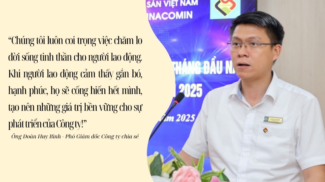 Kết nối tập thể - lan tỏa tinh thần đồng đội Các giải bóng đá, cầu lông, bóng bàn, hội thi văn nghệ… được tổ chức thường xuyên đã trở thành điểm hẹn được đông đảo CBCNV mong đợi. Những hoạt động này không chỉ giúp rèn luyện sức khỏe mà còn là cầu nối gắn kết, phá vỡ khoảng cách giữa các phòng ban, phân xưởng, tạo nên bầu không khí đoàn kết, cởi mở.