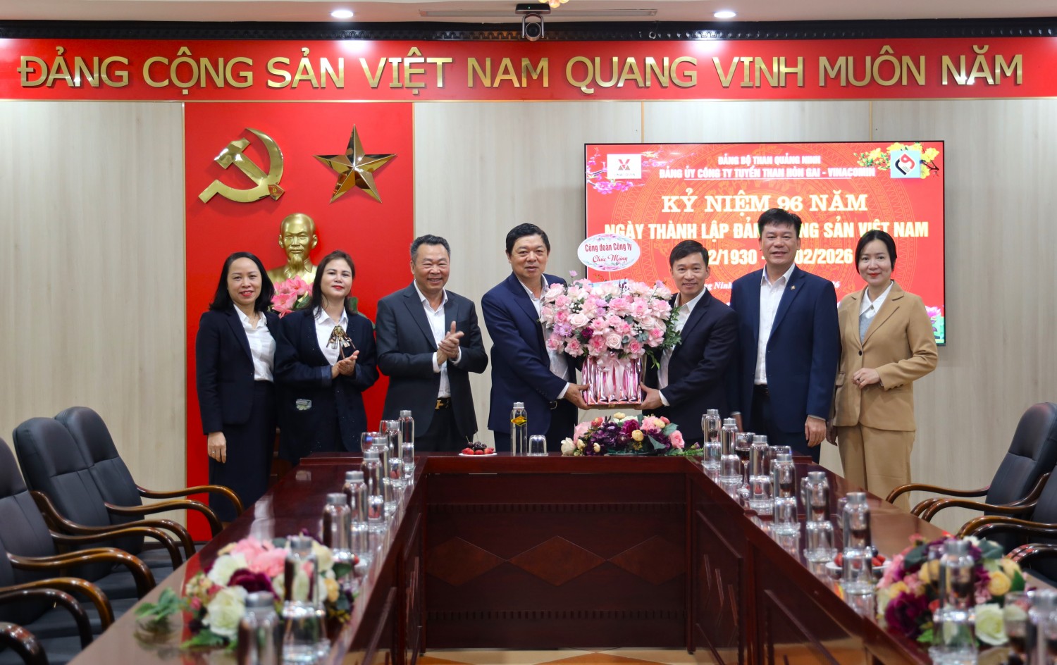 Ban lãnh đạo Công ty Tuyển than Hòn Gai tặng hoa chúc mừng kỷ niệm 96 năm Ngày thành lập Đảng Cộng sản Việt Nam