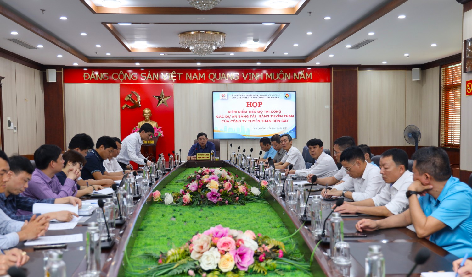 Sáng 31/3, đồng chí Phạm Hồng Thanh - Bí thư Đảng ủy, Giám đốc Công ty Tuyển than Hòn Gai - Vinacomin đã trực tiếp kiểm tra hiện trường thi công và chủ trì họp kiểm điểm tiến độ thực hiện các dự án băng tải trọng điểm. Cùng tham gia có các đồng chí Phó Giám đốc phụ trách, đại diện các phòng chuyên môn, đơn vị tư vấn thiết kế; quản lý dự án; tư vấn giám sát và các nhà thầu thi công