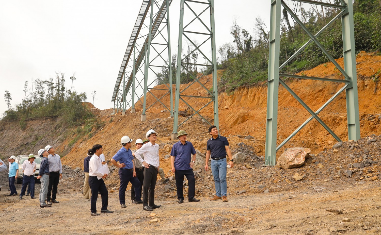Đồng chí Phạm Hồng Thanh - Bí thư Đảng ủy, Giám đốc Công ty kiểm tra hiện trường các dự án băng tải