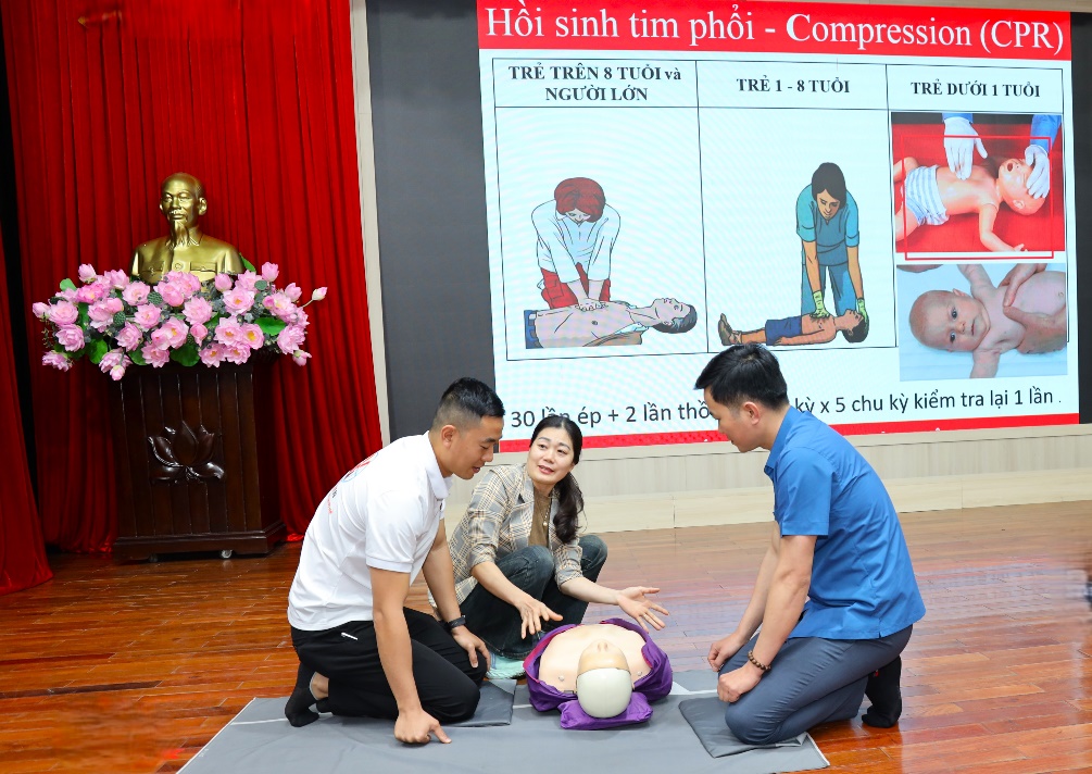 Không chỉ dừng lại ở lý thuyết, nội dung cấp cứu y tế cơ bản cũng được chú trọng. Các ATVSV được hướng dẫn kỹ lưỡng cách xử lý các tình huống tai nạn phổ biến như: say nắng, bỏng, điện giật, ngừng thở, gãy xương... Đặc biệt, phần thực hành băng bó, sơ cứu và hô hấp nhân tạo đã mang lại những trải nghiệm thiết thực, trang bị thêm kỹ năng quan trọng để sẵn sàng ứng phó khi có sự cố xảy ra tại hiện trường. Kết thúc khóa huấn luyện, các học viên hoàn thành bài thu hoạch để đánh giá kết quả học tập. Qua đó, Ban Tổ chức ghi nhận tinh thần học tập nghiêm túc, thái độ cầu thị và quyết tâm cao của toàn thể ATVSV - những người sẽ trực tiếp góp phần giữ gìn “lá chắn an toàn” cho Công ty trong hành trình sản xuất - kinh doanh phía trước.