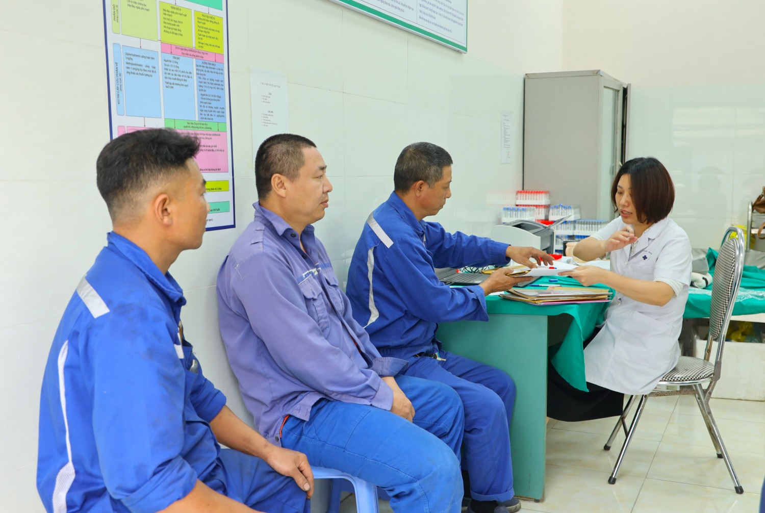 Đợt khám được tổ chức với sự phối hợp của Bệnh viện Than - Khoáng sản Việt Nam, huy động đội ngũ 23 y, bác sĩ và điều dưỡng có trình độ chuyên môn cao, giàu kinh nghiệm trực tiếp tham gia thăm khám. Công tác tổ chức được chuẩn bị bài bản, khoa học, đảm bảo quy trình khám diễn ra nhanh gọn, thuận tiện nhưng vẫn đầy đủ, chính xác. Trong đợt khám này, 100% người lao động được kiểm tra sức khỏe tổng quát với đầy đủ các danh mục như: khám lâm sàng, siêu âm, điện tim, xét nghiệm máu, nước tiểu và các xét nghiệm sinh hóa cần thiết. Qua đó giúp đánh giá chính xác tình trạng sức khỏe của từng cá nhân, kịp thời phát hiện sớm các nguy cơ bệnh lý để tư vấn, điều trị phù hợp, đồng thời định hướng điều chỉnh chế độ sinh hoạt, làm việc khoa học. Kết quả khám sức khỏe cũng là cơ sở quan trọng để Công ty nắm bắt tổng thể tình hình sức khỏe người lao động, từ đó xây dựng các chính sách chăm sóc phù hợp, bố trí công việc hợp lý, góp phần đảm bảo an toàn lao động và nâng cao hiệu quả sản xuất kinh doanh.
