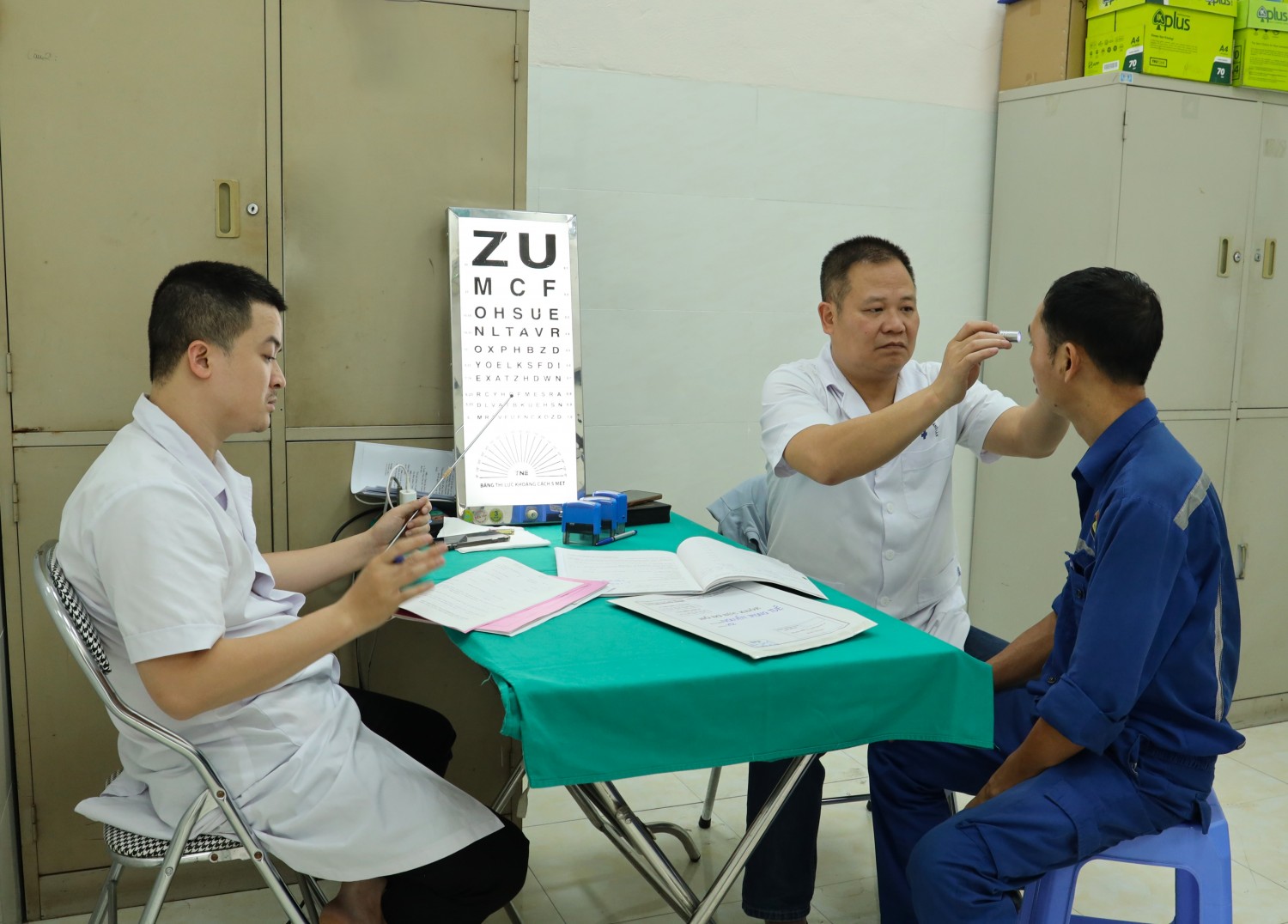 Đội ngũ y, bác sĩ Bệnh viện Than - Khoáng sản Việt Nam thực hiện thăm khám cho người lao động