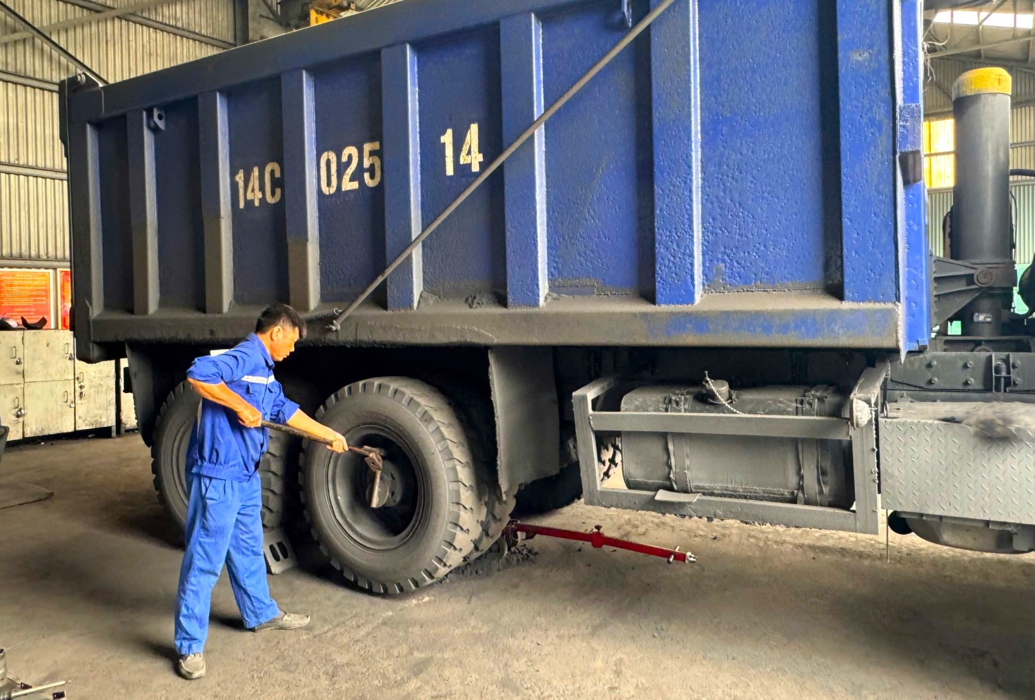 Dụng cụ hỗ trợ tháo lốp ô tô, một trong những sáng kiến cải tiến kỹ thuật do anh Lê Văn Bẩy và tổ sản xuất thực hiện