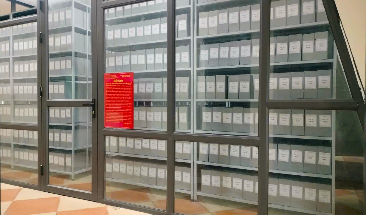 Phòng lưu trữ tài liệu được đầu tư đồng bộ, hiện đại, đáp ứng yêu cầu bảo quản an toàn hồ sơ, tài liệu và tra cứu.