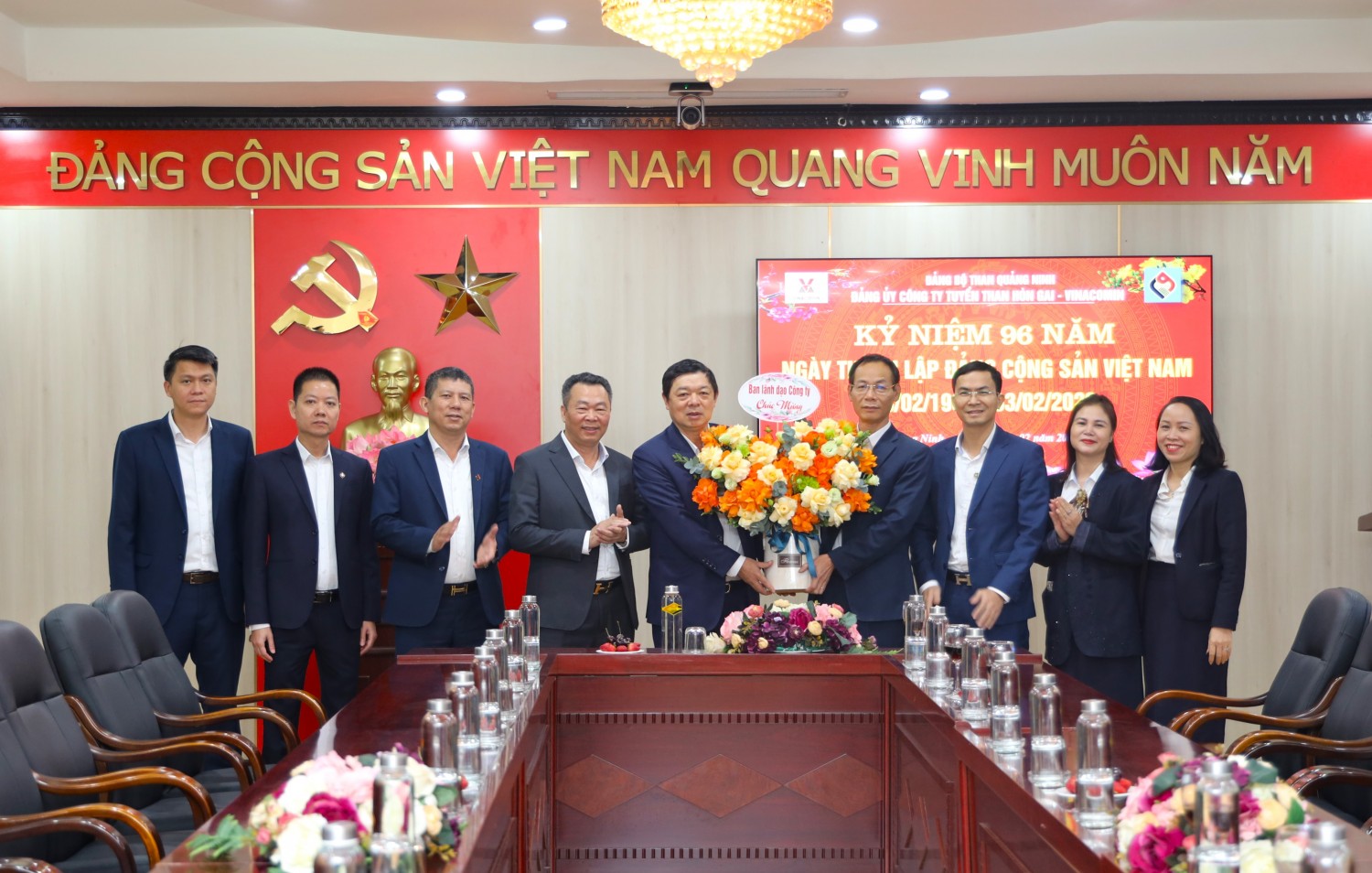 Ban lãnh đạo Công ty Tuyển than Hòn Gai tặng hoa chúc mừng kỷ niệm 96 năm Ngày thành lập Đảng Cộng sản Việt Nam