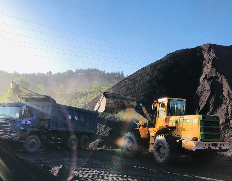 Xe ô tô của Công ty lên mỏ Hà Lầm nhận than, vận chuyển về cảng Làng Khánh