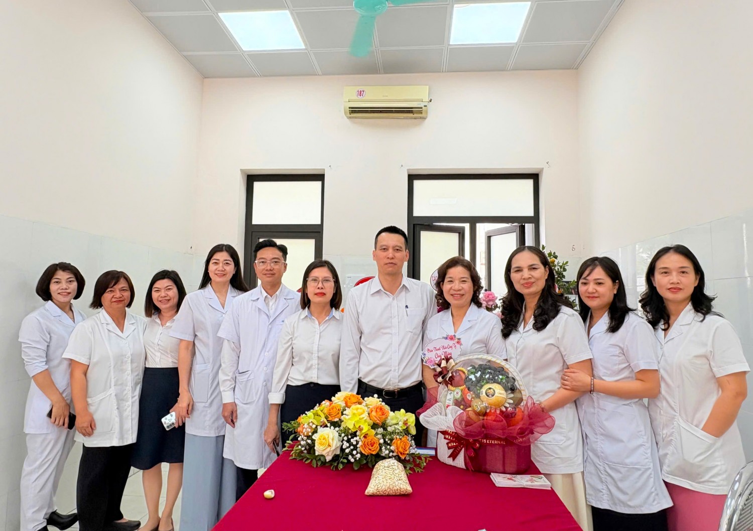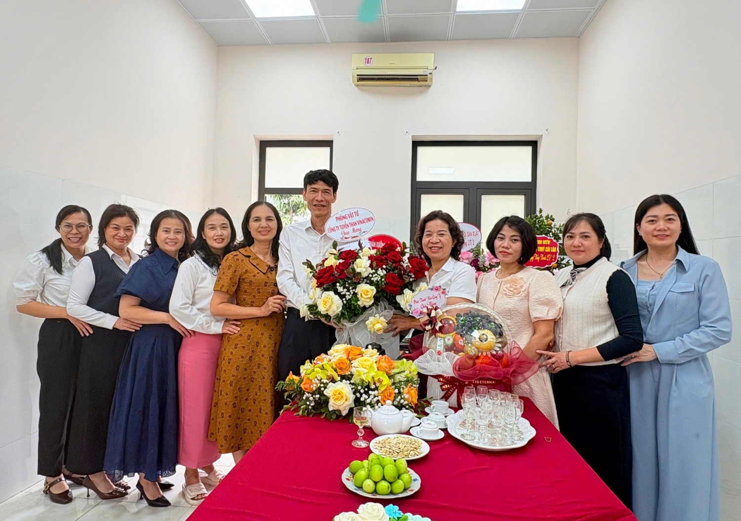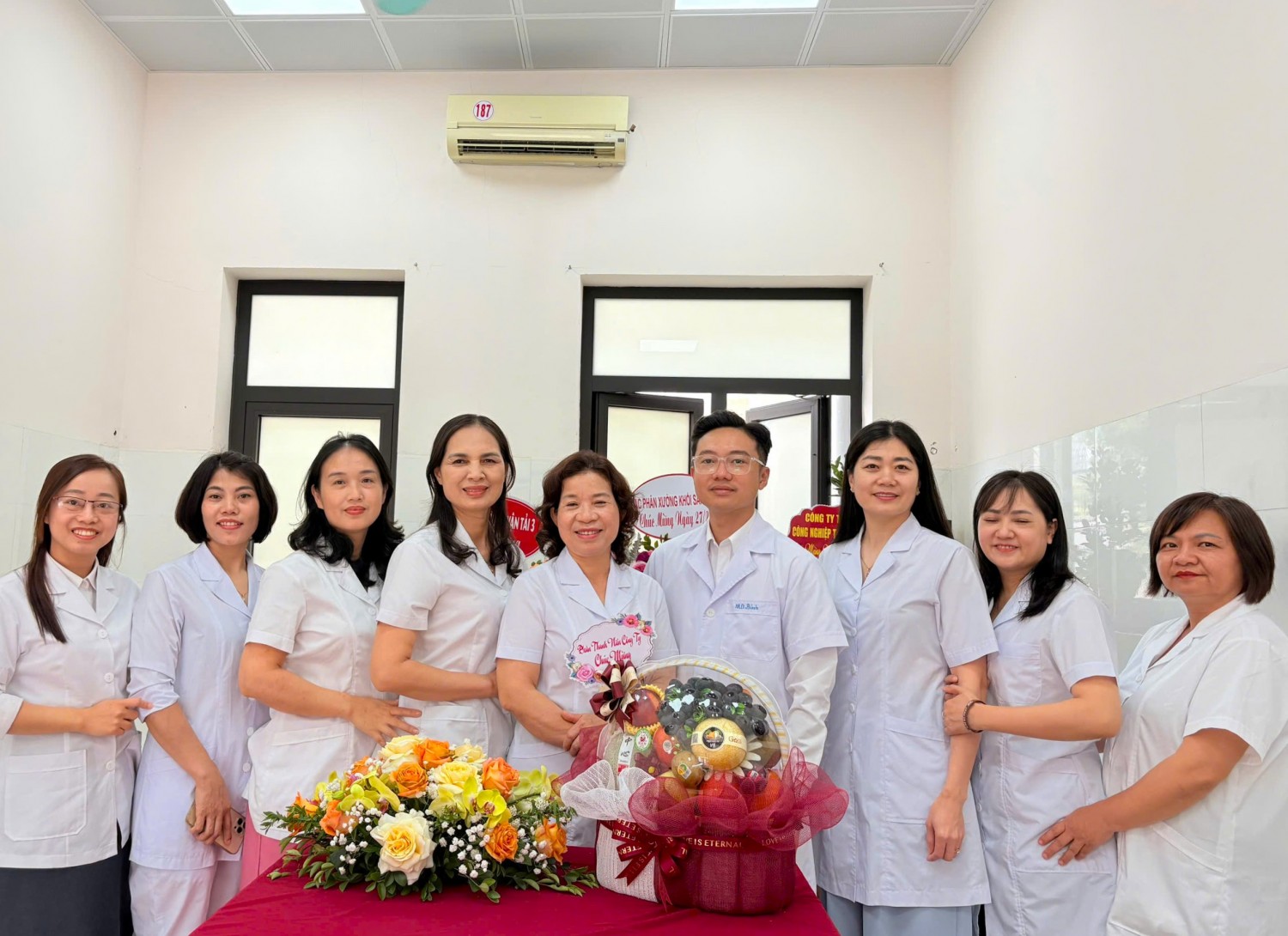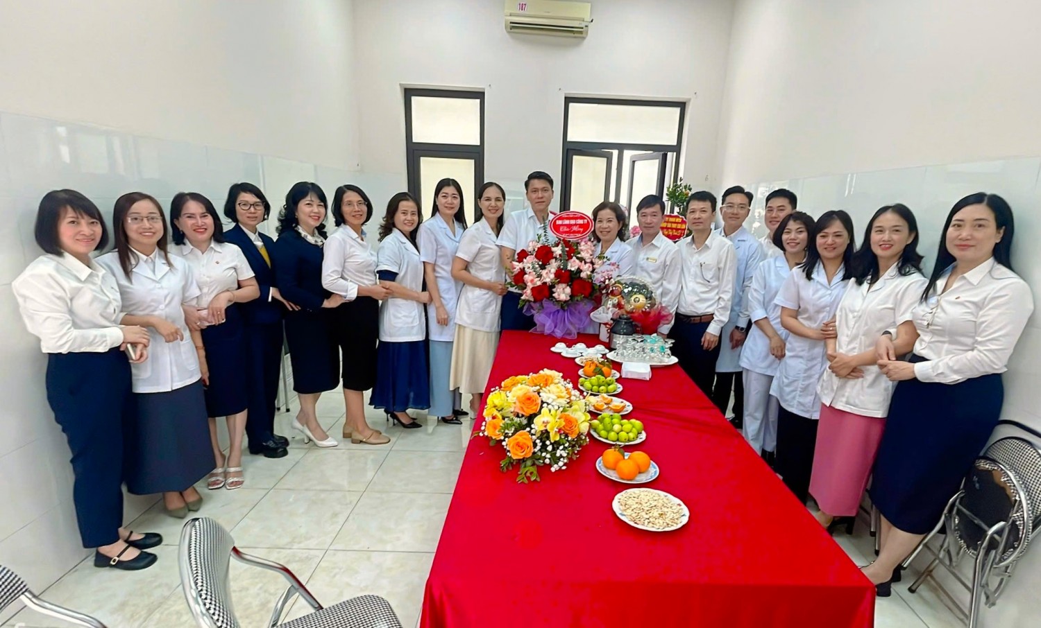 Chúc mừng tập thể cán bộ y tế, đồng chí Đoàn Huy Bình - Phó giám đốc Công ty và đồng chí Nguyễn Văn Huân - Chủ tịch Công đoàn Công ty đã ghi nhận và biểu dương những nỗ lực, tinh thần trách nhiệm của đội ngũ y, bác sĩ trong công tác chăm sóc và bảo vệ sức khỏe cho cán bộ, công nhân viên, người lao động. Trong những năm qua, Trạm Y tế Công ty đã luôn chủ động thực hiện tốt nhiệm vụ khám, chữa bệnh ban đầu, theo dõi sức khỏe người lao động, tham gia công tác phòng chống dịch bệnh, góp phần quan trọng vào việc đảm bảo an toàn, ổn định sản xuất của Công ty. Các đồng chí muốn trong thời gian tới, đội ngũ cán bộ y tế của Trạm Y tế tiếp tục phát huy tinh thần trách nhiệm, không ngừng nâng cao trình độ chuyên môn, rèn luyện y đức, làm tốt hơn nữa công tác chăm sóc sức khỏe, bảo vệ người lao động, góp phần xây dựng Công ty ngày càng phát triển bền vững. Những bó hoa tươi thắm và lời chúc mừng chân thành là nguồn động viên tinh thần to lớn, góp phần tiếp thêm động lực để đội ngũ cán bộ y tế của Công ty tiếp tục cống hiến, chăm lo tốt hơn nữa sức khỏe cho người lao động. Cùng ngày, đại diện các Phòng, Phân xưởng trong Công ty cũng đã đến chúc mừng CBNV Trạm y tế Công ty.